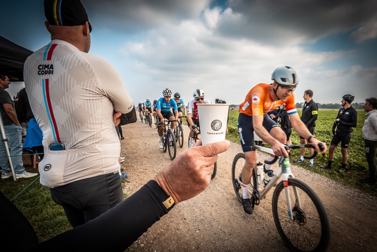 We deelden het terrein met Superior, een fietsenmerk in de hoogste versnelling van hun groeicurve. Hun hospitalitytruck had zo op het F1-circuit kunnen staan, inclusief blinkend espressoapparaat en carbon vibes overal. Onze al eerder gememoreerde Bram, ambassadeur en eeuwige rasrenner, reed zijn wedstrijd uiteraard op het nieuwe paradepaardje van Superior. Ondertussen bekeken dealers, gasten en members van Cima Coppi Businesspeloton de collectie voor 2026, dromend van hogere omzet en nog meer fietsgenot.