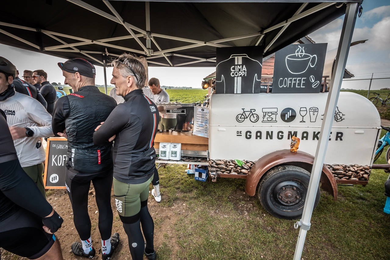 De tussenstop bij de modelsport vliegplaats bood een fantastisch uitzicht op het parcours en een vers bakkie van “De Gangmaker”. De zon liet zich af en toe zien, al waren de gezichten van sommige renners al wat... aerodynamisch verwrongen.